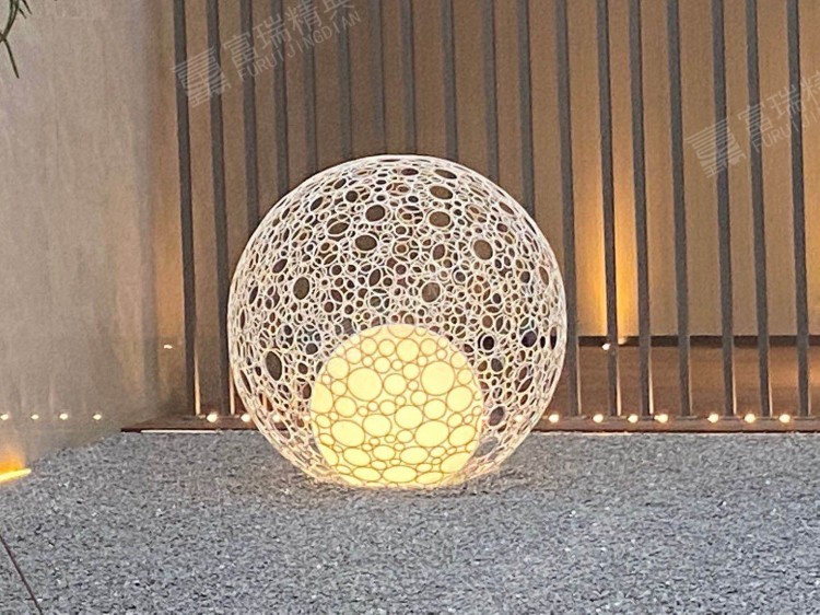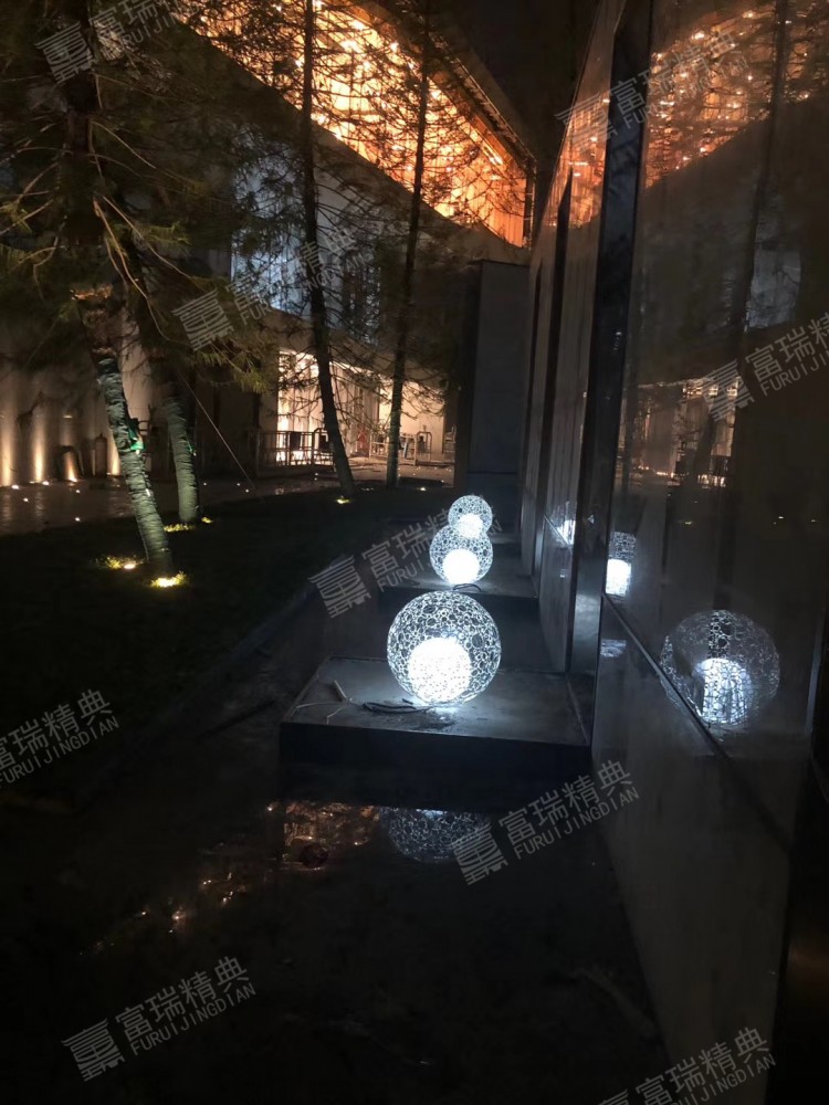 地產(chǎn)售樓部不銹鋼球形鏤空水景雕塑 小品玻璃鋼鑄銅圓雕 富瑞精典