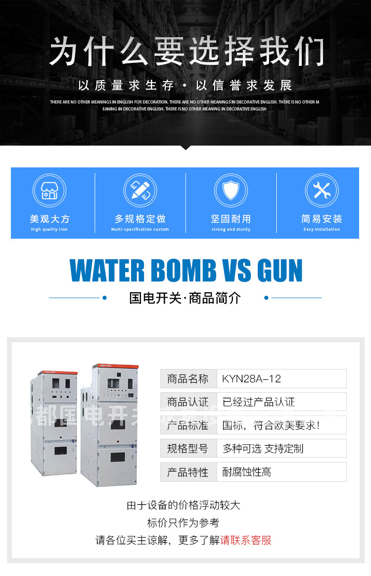 KYN28A—12金屬鎧裝中置式移開式開關(guān)柜適用于三相交流、額定電壓為12KV、頻率為50Hz電力系統(tǒng)中,作為接受和分配電能并對(duì)電路實(shí)行控制、保護(hù)及檢測之用。