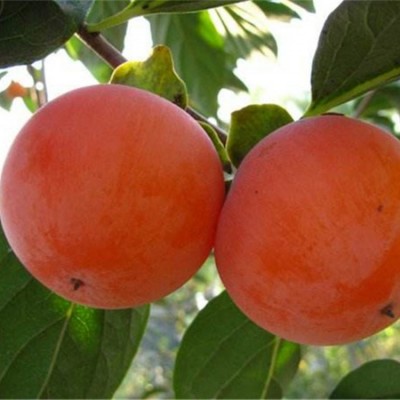落葉喬木,一般1-2年生柿樹稱柿子苗,高達1-2米。樹冠直,樹皮灰色,冬芽先端鈍,小枝無。葉闊橢圓形,表面深綠色、有光澤,革質(zhì),入秋部分葉變紅,葉痕大、紅棕色,維管束痕呈凹入狀。花雌雄異株或雜性同株,單生或聚 生于新生枝條的葉腋中,花黃白色。果形因品種而異,橙黃或紅色,萼片宿存大,先端鈍圓?;ㄆ?~6月,果熟期9~11月。柿已有300年栽培歷史,其栽培品種約有900個以上,都是作為果樹栽培的。在綠化造林中也作為觀果樹和色葉樹應(yīng)用。