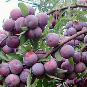 詳細信息 樹勢中庸,樹冠自然開心形。果實正圓形或近圓球形,果個較小,平均單果重15~25克,單果重40克。果皮紫紅色,果肉黃色或偶帶片狀紅色??p合線正,縫溝淺,果點黃色,較密,大小均勻。果粉厚,灰白色,肉質(zhì)脆,味甜,可溶性固形物12.7~13.27%,可溶性總糖10%,總酸0.56%,維C2.6毫克/100克,核小離核,可食率96.8%,晚熟(8月中旬)。有采前落果現(xiàn)象,耐貯運。 ![]() ![]() ![]() ![]() ![]() ![]() ![]() ![]() ![]() |