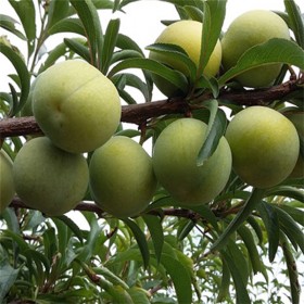 幼樹樹勢較強壯、直立,成年樹較開張,樹體高大,半圓頭型,萌芽率高、成枝率低,節(jié)間較長;一年生枝陽面褐色,陰面綠色,多年生枝灰褐色。葉呈窄披針形,長7.9厘米,寬2.25厘米,葉深綠色,葉尖急尖,葉基狹楔形,葉緣細尖鋸齒;葉柄長0.8厘米,葉柄和主脈淺粉紅色?;ü谥睆?/span>1.4厘米,花瓣5瓣、白色,花絲白色,花柱淡綠色,花萼淡褐綠色。幼樹以中長果枝結(jié)果為主,盛果樹以短果枝和花簇狀果枝結(jié)果為主;果實卵圓形,果面淡黃色,外被蠟粉,果頂一側(cè)微突,縫合線明顯。平均單果重35.3克,大65.9克,果形指數(shù)0.89;果肉淡黃色,平均果肉厚26.45毫米;可溶性固形物16.1%,可溶性糖13.54%,可滴定酸0.77%,維生素C 8.95毫克/100克,可食率97.88%;肉質(zhì)細、清脆爽口,汁液中多,味濃甜,離核,品質(zhì)優(yōu)異。