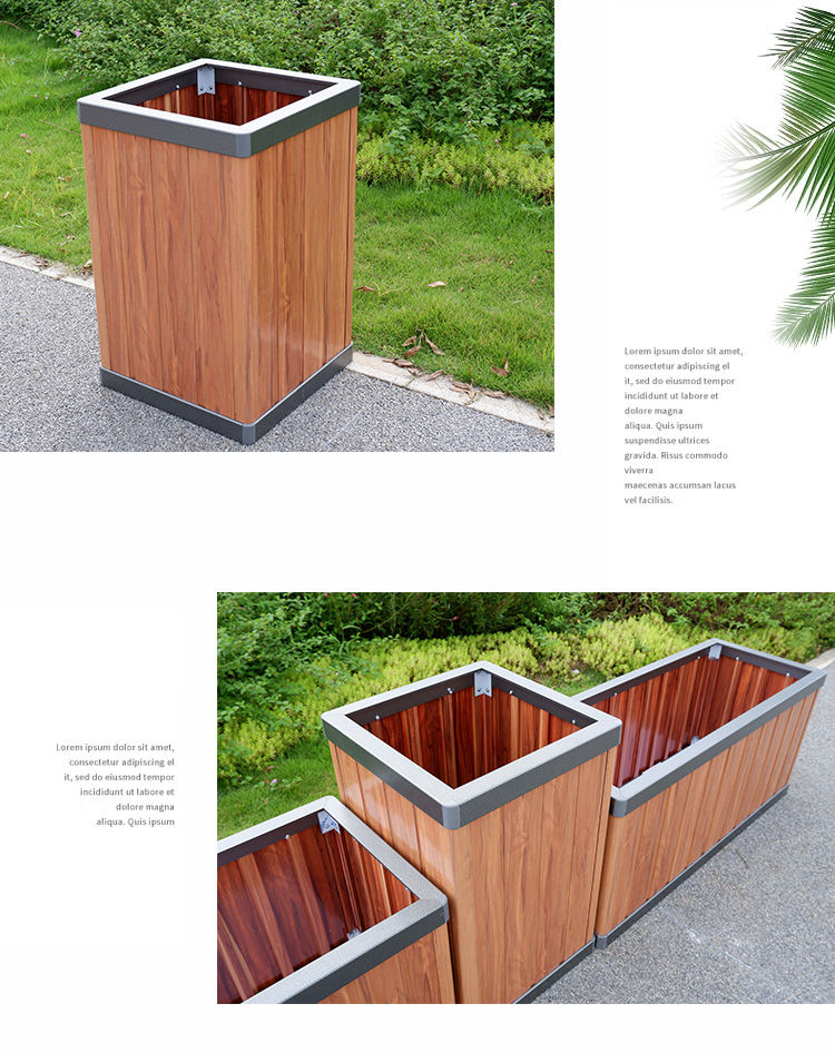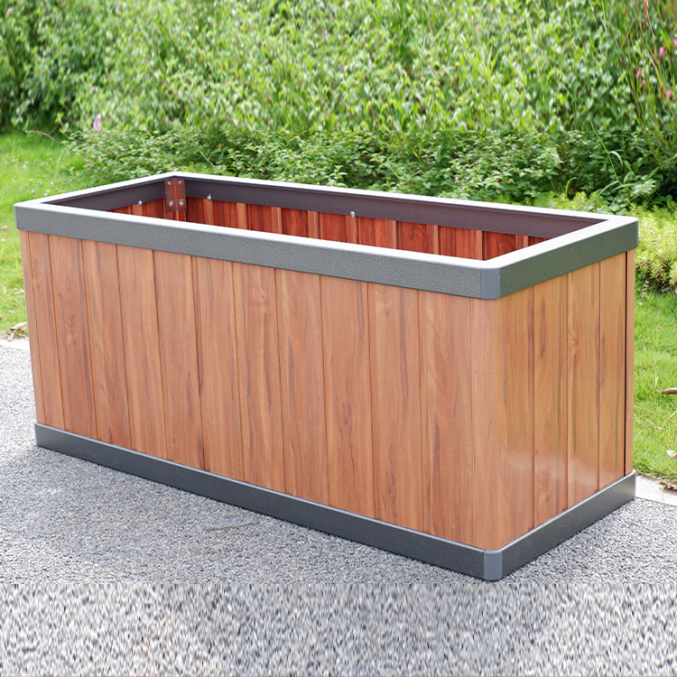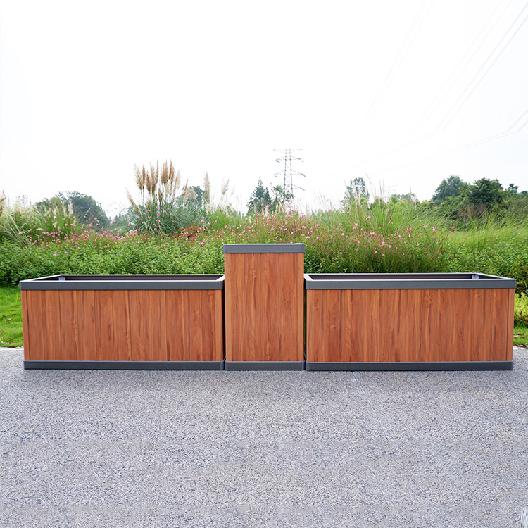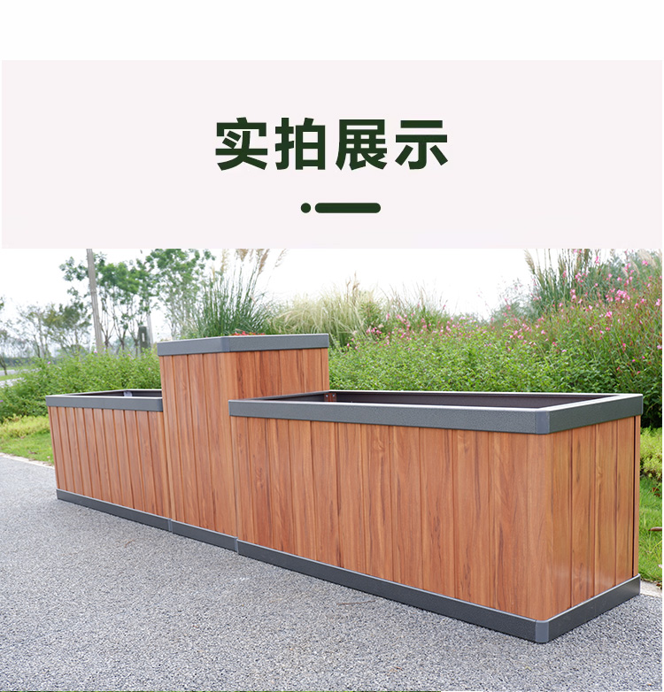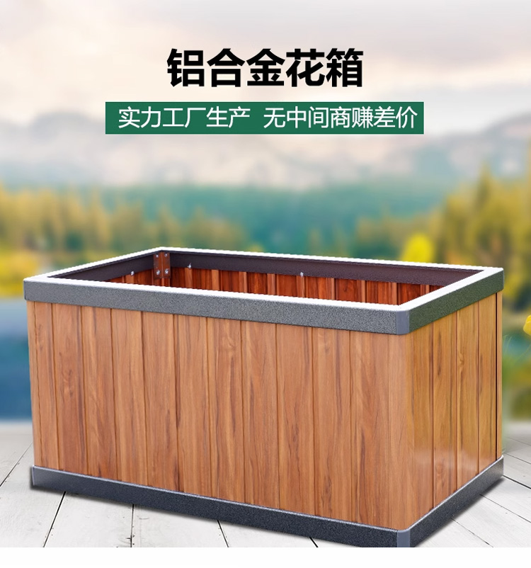 戶外仿木紋鋁合金花箱定做道路景觀綠化市政花壇