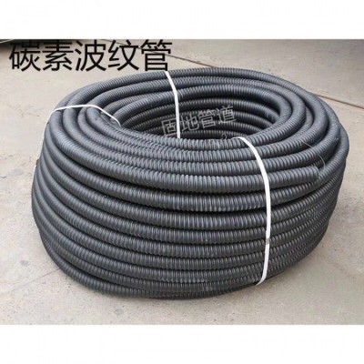 "碳素波紋管是采用HDPE(高密度聚乙烯)與碳素復(fù)合材料擠出成型和獨(dú)特的旋轉(zhuǎn)成型工藝技術(shù)生產(chǎn)的新型電力線纜保護(hù)管道。