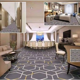 2. 在鋪裝地毯時(shí),為使地毯的鋪裝美觀,應(yīng)采用逆光和順光交錯鋪設(shè)的方法。鋪裝前,先按絨毛方向用箭頭劃在地在背擊:鋪裝應(yīng)由中間向兩側(cè)均鋪。為避免鋪裝錯誤,可先將背時(shí)L向有簡頭的地毯互相垂直鋪好,檢驗(yàn)無誤后,由中間內(nèi)時(shí)1正式鋪裝。鋪裝時(shí),每塊地毯都應(yīng)與相鄰的地毯相互擠點(diǎn),當(dāng)周邊地毯不足一塊時(shí),將地毯背面量好尺寸,按繞面箭滬向和相互垂直的要求,檢測無誤后,鋒利的裁刀可擊切斷地毯,將周邊的地毯鋪裝好。