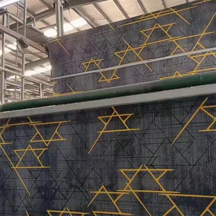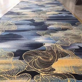 2. 在鋪裝地毯時,為使地毯的鋪裝美觀,應(yīng)采用逆光和順光交錯鋪設(shè)的方法。鋪裝前,先按絨毛方向用箭頭劃在地在背擊:鋪裝應(yīng)由中間向兩側(cè)均鋪。為避免鋪裝錯誤,可先將背時L向有簡頭的地毯互相垂直鋪好,檢驗(yàn)無誤后,由中間內(nèi)時1正式鋪裝。鋪裝時,每塊地毯都應(yīng)與相鄰的地毯相互擠點(diǎn),當(dāng)周邊地毯不足一塊時,將地毯背面量好尺寸,按繞面箭滬向和相互垂直的要求,檢測無誤后,鋒利的裁刀可擊切斷地毯,將周邊的地毯鋪裝好。