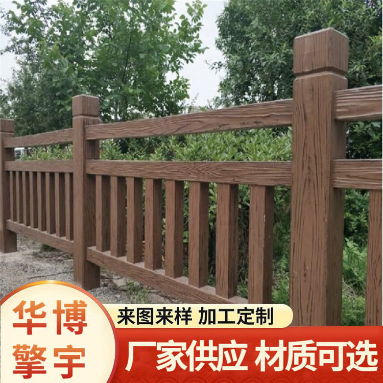 詳細(xì)信息 仿木護(hù)欄產(chǎn)品內(nèi)置鋼筋,強(qiáng)度高于鐵藝圍欄。品種多,色彩豐富,可與各種環(huán)境融合,用戶可根據(jù)區(qū)域環(huán)境選擇款式,彰顯個(gè)性。藝術(shù)感強(qiáng):產(chǎn)品線條流暢、造型精美、時(shí)尚氣派、古樸典雅、穩(wěn)重大氣,有的透露著古羅馬濃厚的藝術(shù)氣息,外在裝飾與內(nèi)在氣韻美融為一體。綠色環(huán)保;不生銹,避免了不銹鋼圍欄日照反光的反污染現(xiàn)象。滿足不同客戶需要。