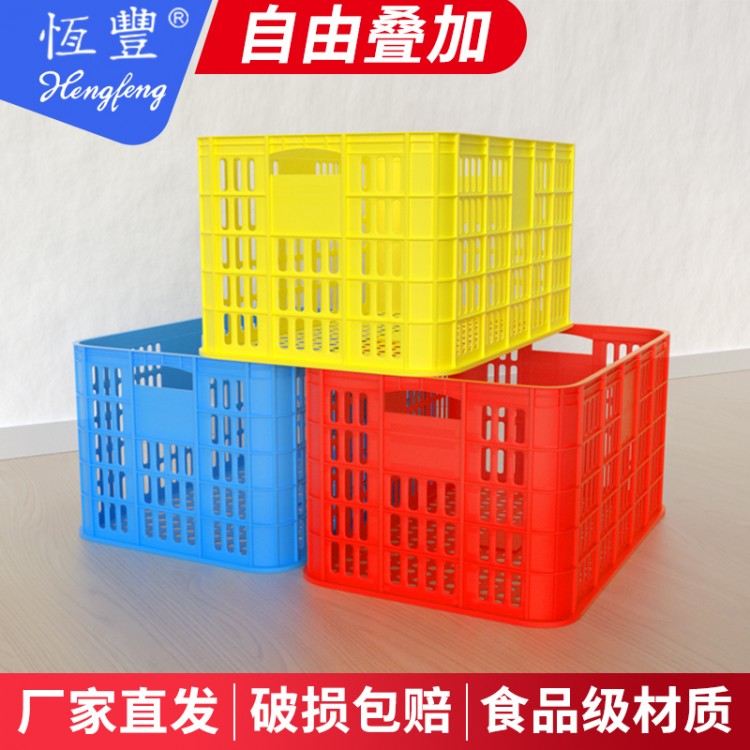 HENGFENG/恒豐 錯(cuò)位周轉(zhuǎn)筐 2號(hào) 外尺寸590×360×340mm內(nèi)尺寸560×330×320mm藍(lán)色紅色黃色超市筐廠(chǎng)家批發(fā)周轉(zhuǎn)筐