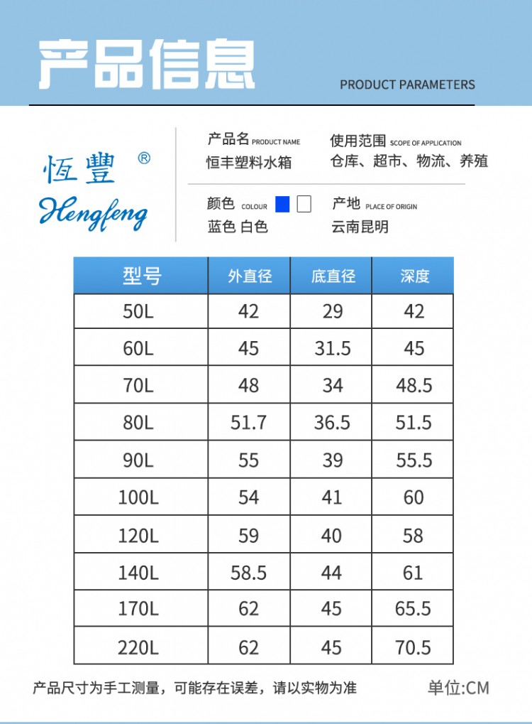 恒豐牌 60L 加厚100型 藍(lán)色水桶 垃圾周轉(zhuǎn)桶 精品塑料水桶 廚房用大水桶(10只裝)可定制
