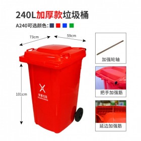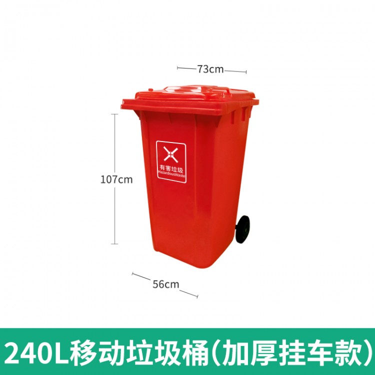 HENGFENG/恒豐移動垃圾桶加厚240型730×600×1010mm240L紅色環(huán)衛(wèi)垃圾桶