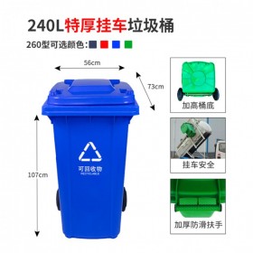 ¥260.00 四川昆明廠家批發(fā)恒豐移動垃圾桶綠色藍(lán)色碳灰可回收垃圾桶社區(qū)環(huán)衛(wèi)垃圾桶260型 730×560×1070mm 240L