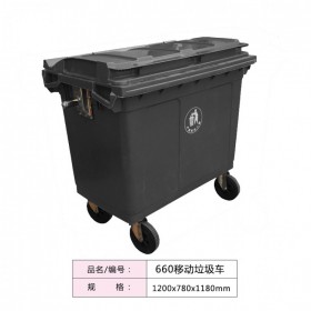 ¥700.00 四川昆明廠家批發(fā)恒豐移動垃圾車綠色碳灰色社區(qū)環(huán)衛(wèi)垃圾車660型1420×780×1180mm 660L