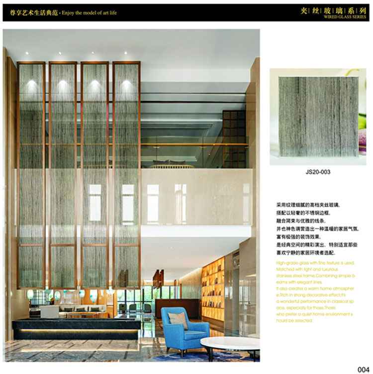 成都明珠玻璃有限公司是集室內(nèi)裝飾與外裝于一體的藝術(shù)玻璃生產(chǎn)公司,我公司有大型的玻璃加工設(shè)備,擁有各類專業(yè)技術(shù)人員,具有強大的技術(shù)支持、專業(yè)的管理團隊和體制、完整的管理體系。本公司專業(yè)生產(chǎn):夾絲玻璃,夾娟玻璃,藝術(shù)玻璃,教堂玻璃,烤漆玻璃,噴砂玻璃,彩釉玻璃,玻璃磚,U型玻璃,長虹壓花玻璃,藝術(shù)玻璃隔斷,激光內(nèi)雕發(fā)光玻璃,雕刻雕花工藝玻璃,山水畫水墨畫藝術(shù)玻璃等系列。