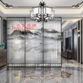 成都夾絲玻璃定制作夾娟畫玻璃廠價水墨畫隔斷屏風玻璃
