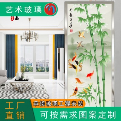 藝術(shù)玻璃玄關(guān)簡約輕奢現(xiàn)代深雕紋理雙面鋼化隔斷屏風(fēng)鞋柜上衛(wèi)生間