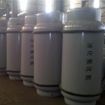 常使用銅、鐵、鎳、銀鉑或蒙乃爾合金容器,在有壓力操作的情況下使用內(nèi)襯塑料或氟塑料的鋼制壓力容器;氣瓶采用含硅量低的無(wú)縫鋼瓶,高溫下使用鎳或鎳基合金、蒙乃爾合金材料。密封材料在常溫常壓下可用氟橡膠、聚四氟乙烯、聚三氟氯乙烯等,在250℃以內(nèi)使用聚四氟乙烯,高于250℃推薦使用紫銅密封墊。氟化氫的充瓶壓力位2.0MPa,充裝系數(shù)為0.83 kg/L。
