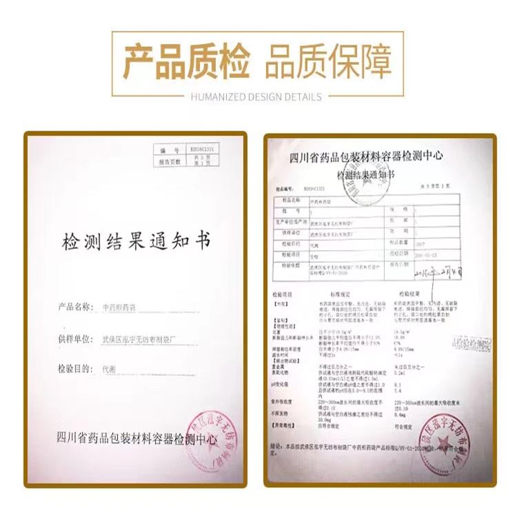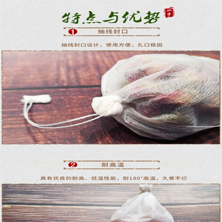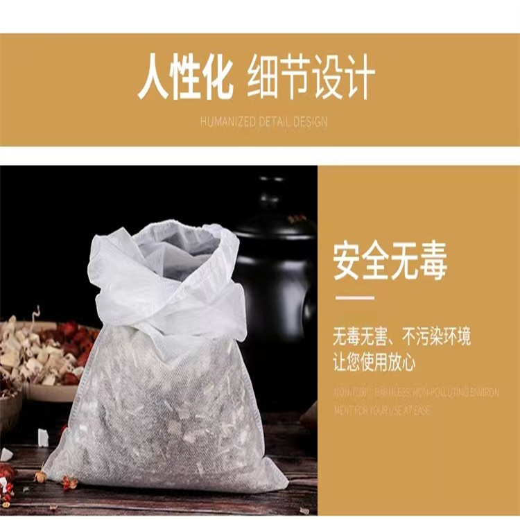 本廠是集獨特工藝,專業(yè)設(shè)備,專致力于生產(chǎn)銷售無紡布煎藥袋、熬藥袋、敷料袋、香料袋十余年的廠家。 袋口有結(jié)實的丙綸繩,可纏繞并扎緊袋口,美觀、實用、結(jié)實、衛(wèi)生。不但適合病人家屬單罐熬藥,藥渣分離,中藥干凈爽口,更適用于醫(yī)院熬藥機上集中煎藥。還適用于醫(yī)院分副或分味單獨包裝中藥。該工藝由特殊生產(chǎn),大大節(jié)約了人工,克服了人多, 流程多、環(huán)節(jié)多而造成的污染,因而成本更低,效果更佳,售價更便宜。 可結(jié)合用戶自身特點,單獨特殊設(shè)計制作任意規(guī)格、尺寸。
