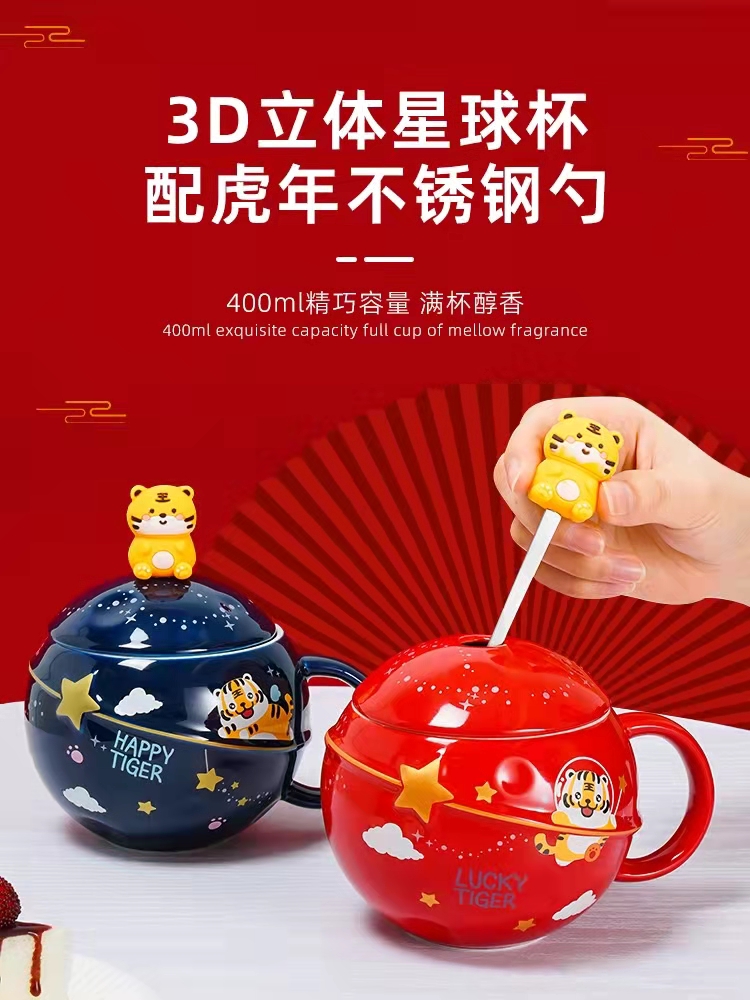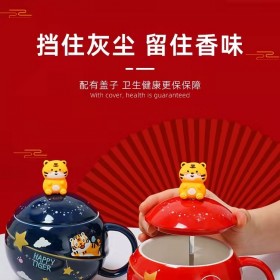虎年咖啡杯馬克杯帶蓋定制 大容量陶瓷杯創(chuàng)意杯子