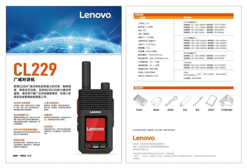 聯(lián)想Lenovo全國(guó)對(duì)講機(jī)CL-229公網(wǎng)對(duì)講機(jī)手持戶外機(jī)5000公里