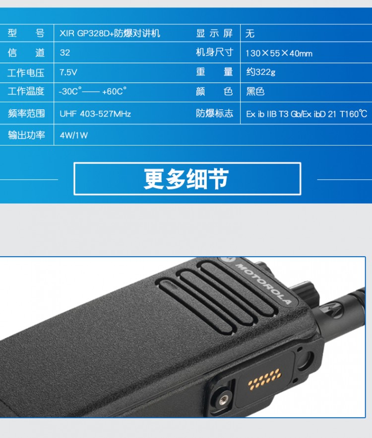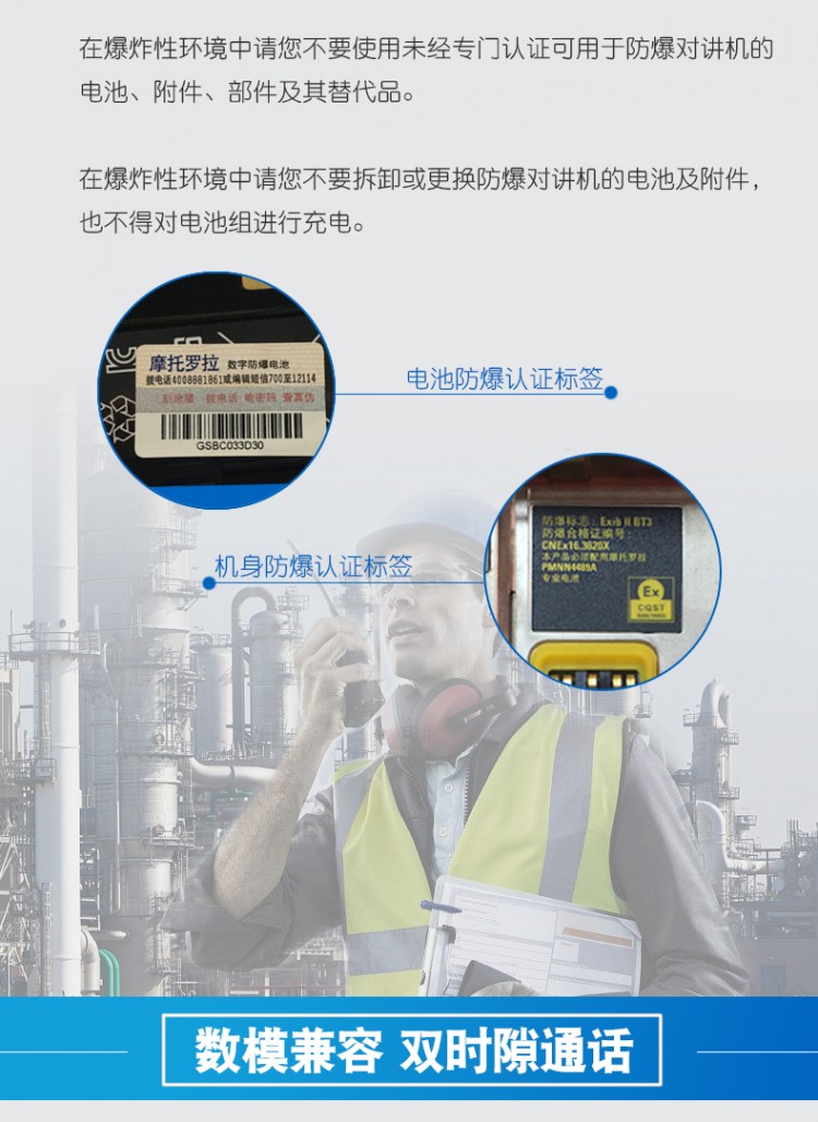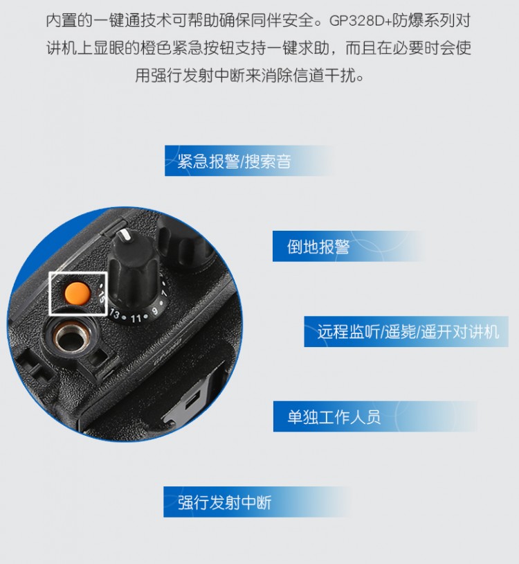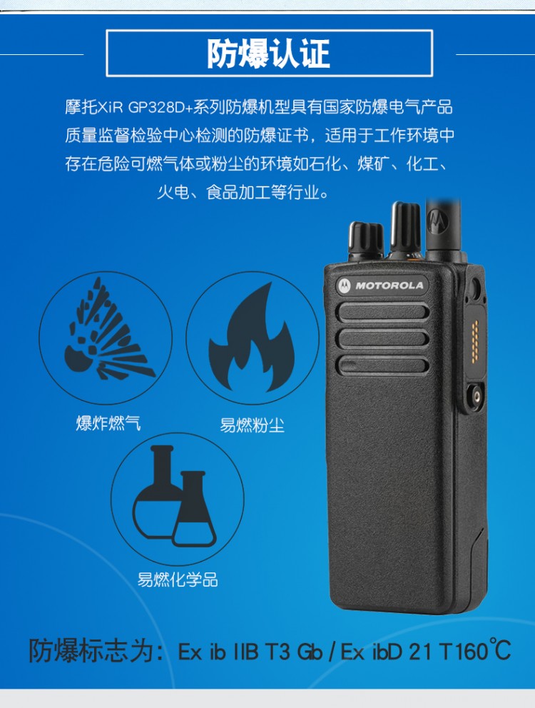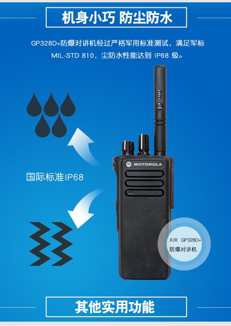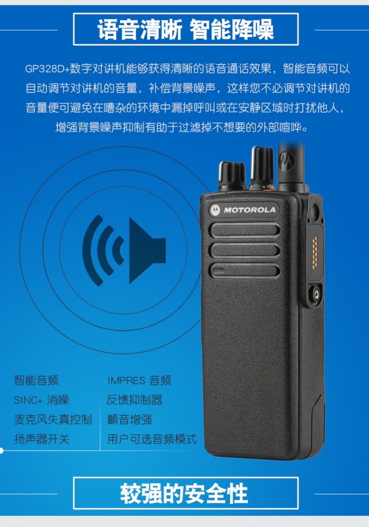 通話聲音響亮、清楚的通話效果使用戶即使在嘈雜的環(huán)境下也能保持順暢通訊。16個(gè)信道允許用戶將自己的工作團(tuán)隊(duì)分成不同的通話組,從而提高無(wú)線電通訊的靈活性。專線 (PL) 和數(shù)字專線 (DPL) 功能有助于防止同一頻率上出現(xiàn)外界干擾通話。摩托羅拉gp338防爆對(duì)講機(jī)超長(zhǎng)的電池壽命可以使用戶的通話時(shí)間長(zhǎng)達(dá)8小時(shí)以上。并且有LED指示燈和音頻提示音可以提醒用戶電池電量不足。