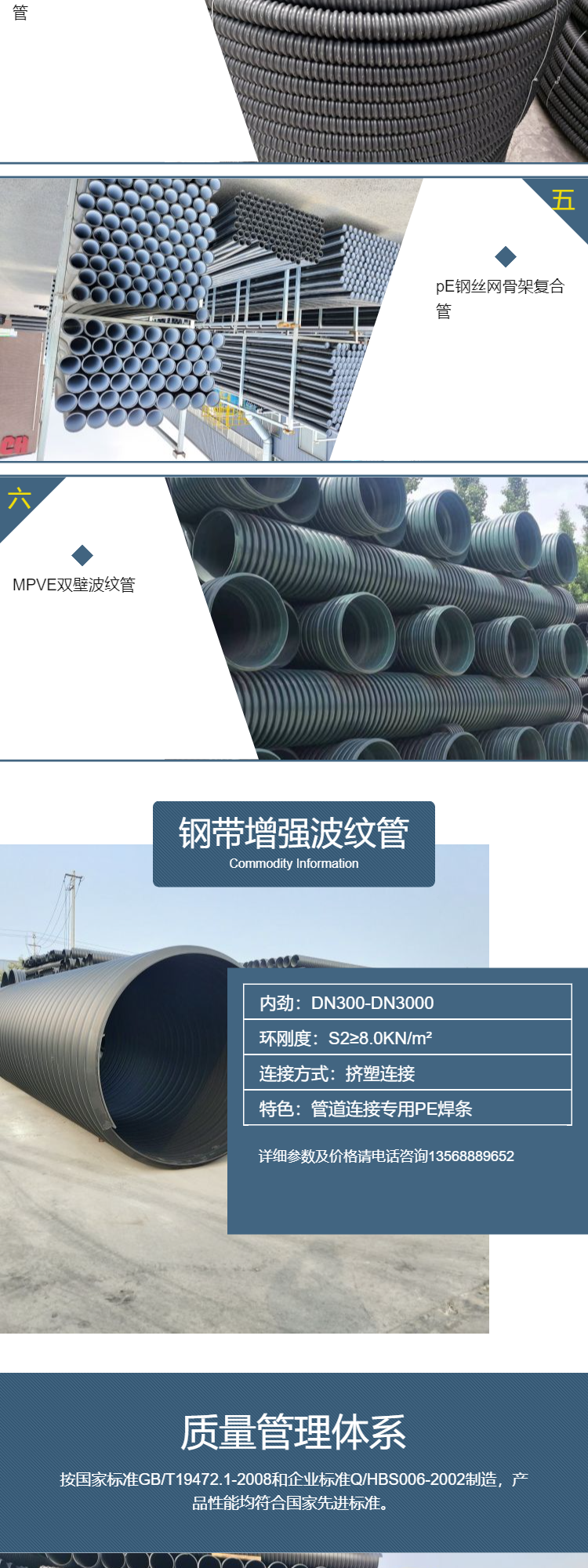 HDPE鋼帶增強波紋管 老舊小區(qū)排污改造用管 大口徑排污水雨水下水管