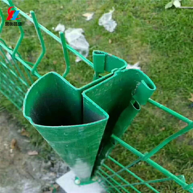 四川成都專業(yè)生產(chǎn)桃型柱三角折彎護(hù)欄防護(hù)網(wǎng)高速公路鐵路安全圍欄