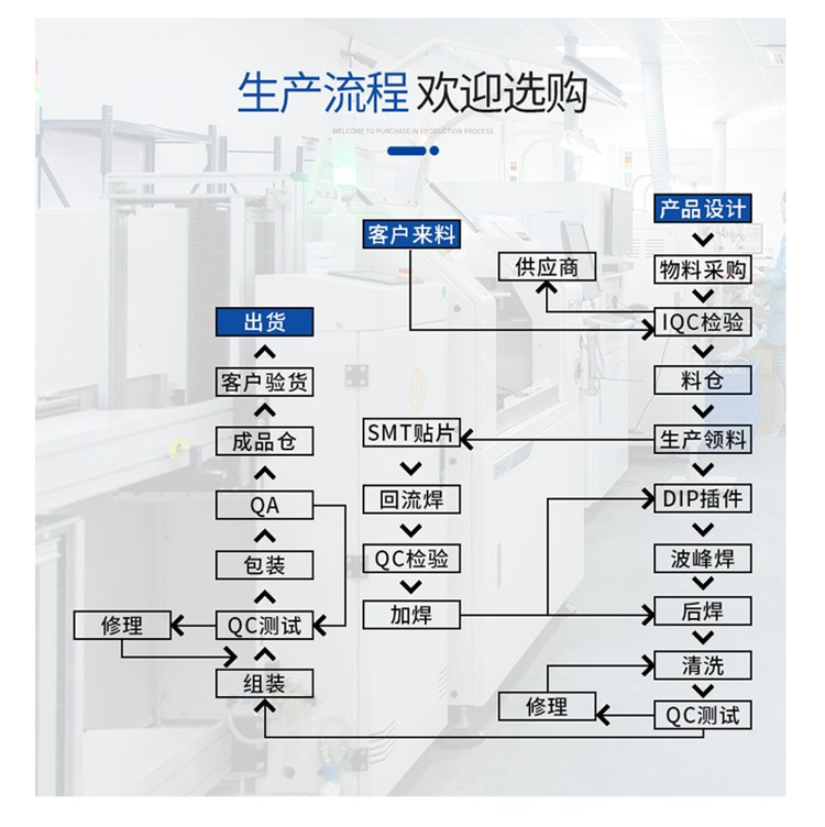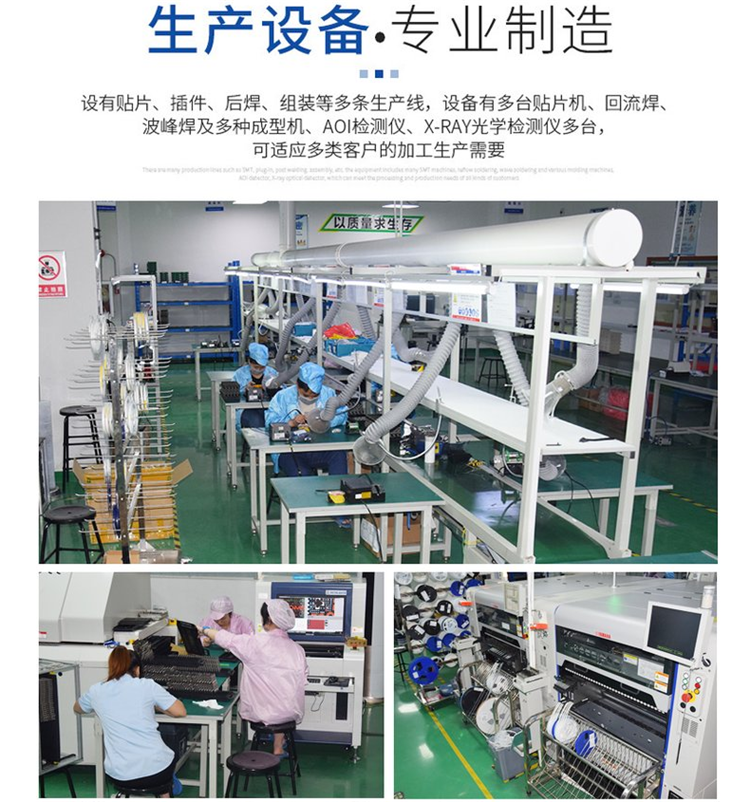 1.實體廠家,貼片/插件/后焊/測試/成品組裝/包裝一站式加工,有效調(diào)控生產(chǎn)周期 和產(chǎn)品質(zhì)量;