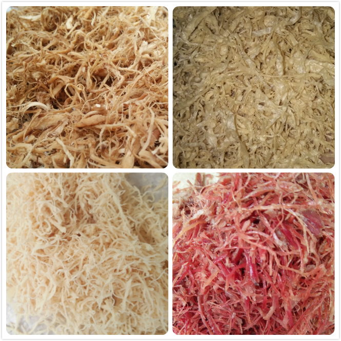 我公司自主研發(fā)生產(chǎn)的多功能拆絲機(jī)可以將大豆蛋白、香菇柄、雞肉、牛肉、豬肉、蝦米、干貝(瑤柱)等帶纖維的物料一次性拉成絲狀;絲長(zhǎng)度、粗細(xì)可調(diào)節(jié),絲狀均勻,無(wú)需人.工再進(jìn)行篩選,即可直接使用。