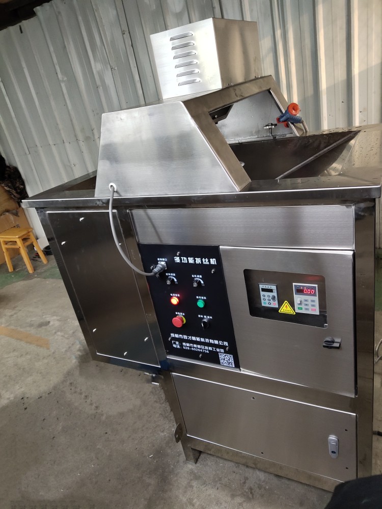 我公司自主研發(fā)生產(chǎn)的多功能拆絲機可以將大豆蛋白、香菇柄、雞肉、牛肉、豬肉、蝦米、干貝(瑤柱)等帶纖維的物料一次性拉成絲狀;絲長度、粗細可調(diào)節(jié),絲狀均勻,無需人.工再進行篩選,即可直接使用。