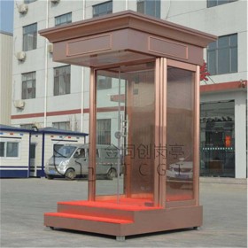 材質分類:不銹鋼崗亭、鋁塑板崗亭、鋼結構崗亭、木質崗亭、金屬雕花板崗