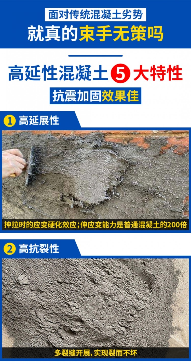 ecc混凝土 60d等效彎曲韌性≥160一類 抗震抗裂專用材料