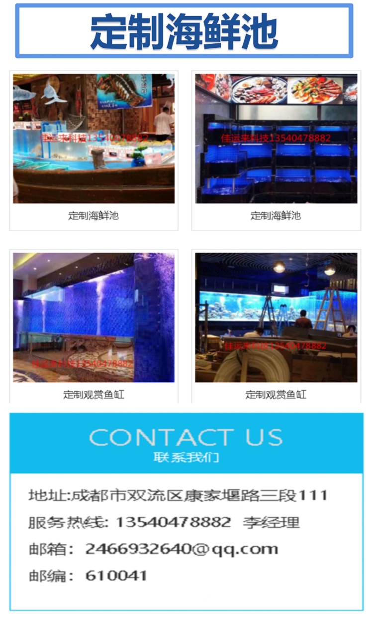 海鮮池在我們?nèi)粘I钪惺呛艹R姷?,在使用上不單要實用,還要講究美觀。小型海鮮池結(jié)構(gòu)單一,方便安裝和拆卸,這種結(jié)構(gòu)方便根據(jù)客戶的不同要求來增減數(shù)量及層數(shù),施工周期短。海鮮池框架采用優(yōu)質(zhì)材料制作而成,具有優(yōu)良的耐腐蝕性,而且重量輕,能滿足樓層受壓的標準載荷。密封效果好,杜絕了海水滲漏,增加魚池內(nèi)部的流動性及含氧量,提高循環(huán)流動。在外形上流線型設(shè)計,美觀大方,提升展示效果。