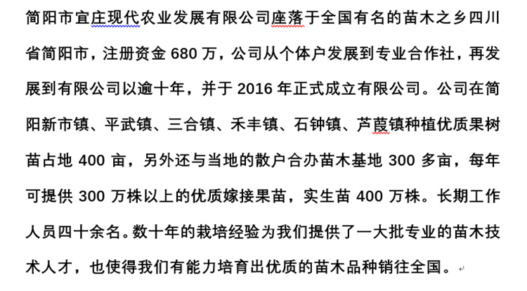 簡陽市宜莊現代農業(yè)發(fā)展有限公司