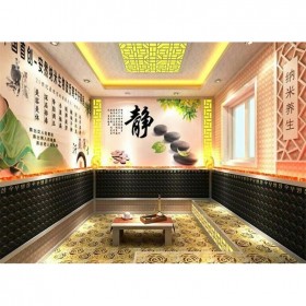 康源汗蒸房是利用特殊材料及紅外線反射原理,加溫使人流 汗而形成的一種高熱的物理療法。通過吸收加熱后的特殊材料, 紅外線、負離子、亞離子、礦物元素,代謝皮膚有害物質,提高肌膚彈性,促進全身血液循環(huán)和新陳代謝,從而達到美容、美體和治 療一些慢性病的作用。