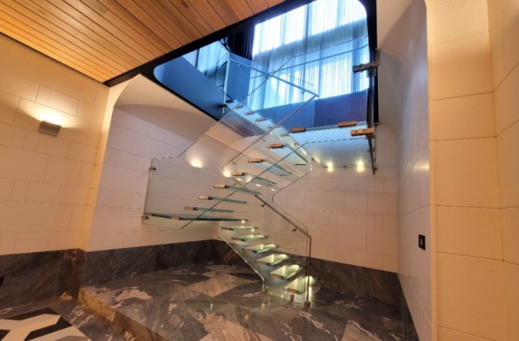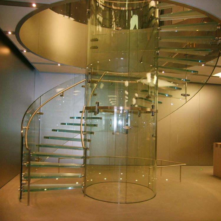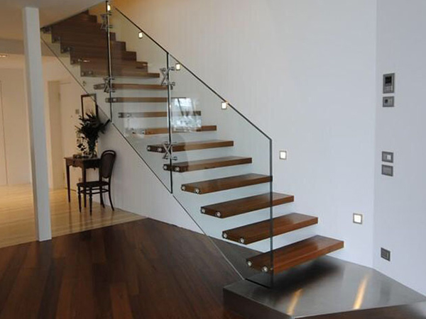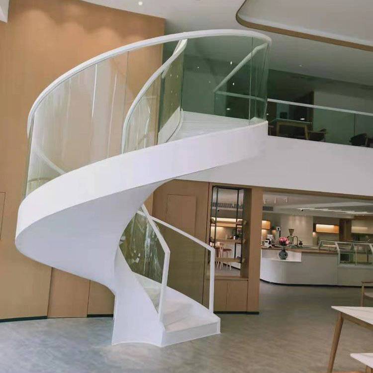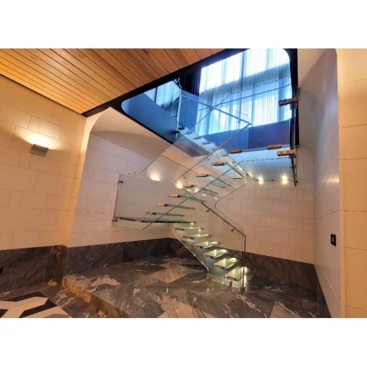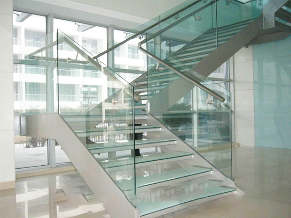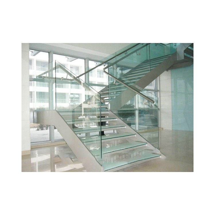 玻璃樓梯 碳鋼材質(zhì) 白色透明鋼化玻璃 平臺玻璃欄桿扶手
