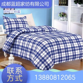 160cm*200cm格子花色學生被套三件套 廠家直銷三件套 藍超家紡出售