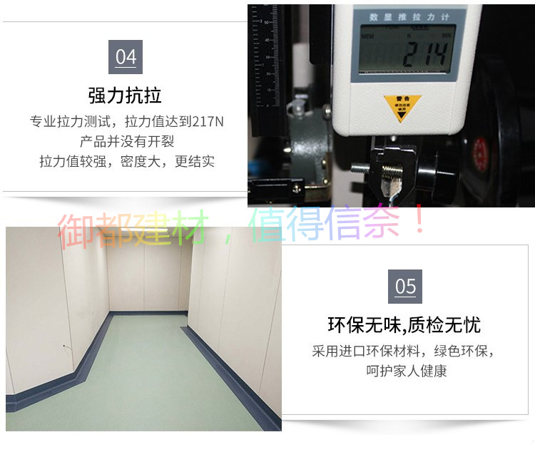 防滑:化學(xué)實驗室地膠PVC表層的耐磨層有特殊的防滑性,其表面為高密度特殊結(jié)構(gòu),與普通的地面材料相比,PVC地板在沾水的情況下腳感澀,即越遇水越澀,解除老年人及兒童會滑到的安顧慮。其特性是石材、瓷磚等無法比擬的。(因此,所以在公共安要求較高的公共場所如機場、醫(yī)院、幼兒園、學(xué)校等是的地面裝飾材料,近年來在中已經(jīng)非常普及。