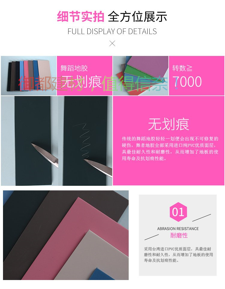 舞者專業(yè)舞蹈地膠是實(shí)心無刮痕的,用硬幣在實(shí)心舞蹈地膠上來回刮擦,沒有留下任何白色痕跡就是舞者專業(yè)舞蹈地膠,