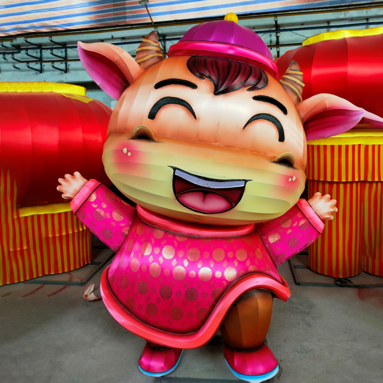 自貢牛型花燈戶外景區(qū)街道卡通動物裝飾餐飲店鋪大型LED燈籠中式