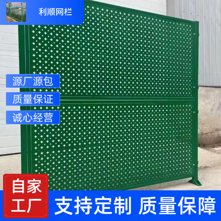 綠色透風(fēng)裝配式鋼板沖孔圍擋 園林整改施工臨時(shí)隔離防護(hù)欄