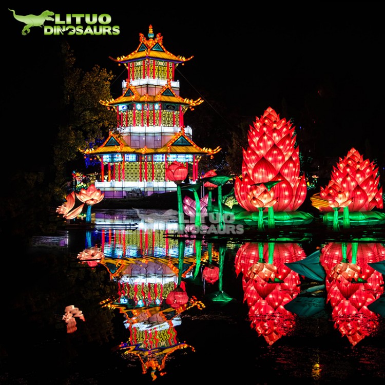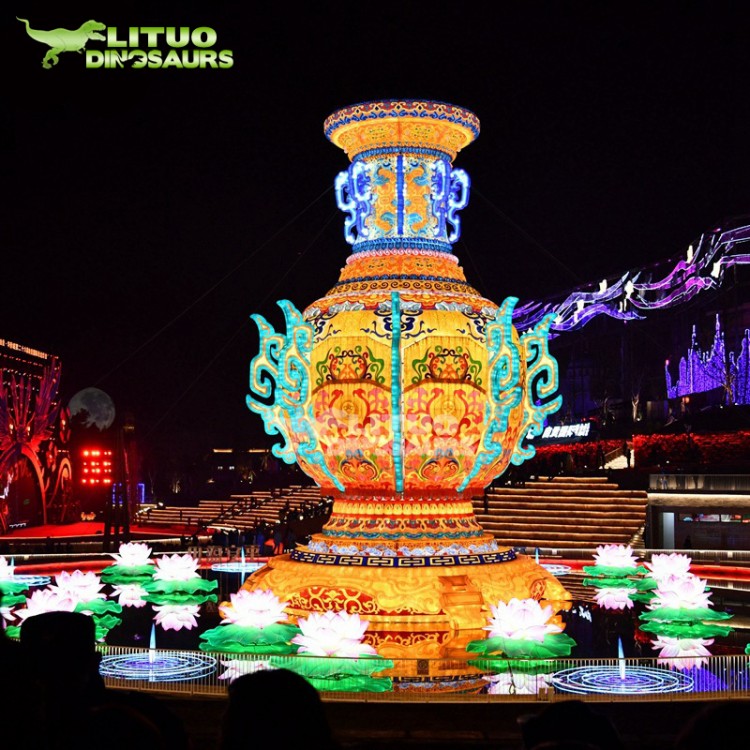 力拓景觀-不夜城巨型燈籠 絲綢材質(zhì)戶外防水花燈彩燈廠家