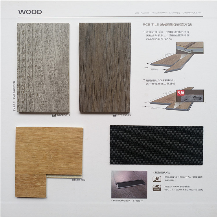 產(chǎn)品特點(diǎn):通過(guò)Rigid Core Board(硬質(zhì)芯層)減少地面轉(zhuǎn)印。適用Valinge 5G Click結(jié)構(gòu),縮短施工時(shí)間。