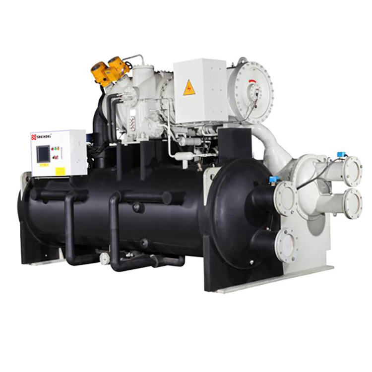 產(chǎn)品描述:為SINOKING推出的離心式壓縮機(jī)的新一代降膜式水源熱泵機(jī)組,是由離心式壓縮機(jī)、降膜式蒸發(fā)器、殼管式冷凝器、節(jié)流機(jī)構(gòu)自控元件等組成,產(chǎn)品按照ISO9000質(zhì)量體系、以及嚴(yán)格的壓力容器規(guī)范與制冷設(shè)備安全標(biāo)準(zhǔn)設(shè)計(jì)生產(chǎn)。是一種利用地下水、土壤或地表水等地下淺層地能資源的冷熱源兼用型的高效節(jié)能空調(diào)系統(tǒng)。機(jī)組利用地下水和土壤溫度相對(duì)穩(wěn)定的特點(diǎn),通過地下水或深埋土壤的管路系統(tǒng)進(jìn)行熱量交換,實(shí)現(xiàn)低位熱能向高位熱能的轉(zhuǎn)移。冬季時(shí)將從水源中吸取的低品位熱量轉(zhuǎn)移到室內(nèi),實(shí)現(xiàn)對(duì)房間供暖。夏季時(shí)則從室內(nèi)取出熱量,釋放到水源,實(shí)現(xiàn)對(duì)房間的制冷。