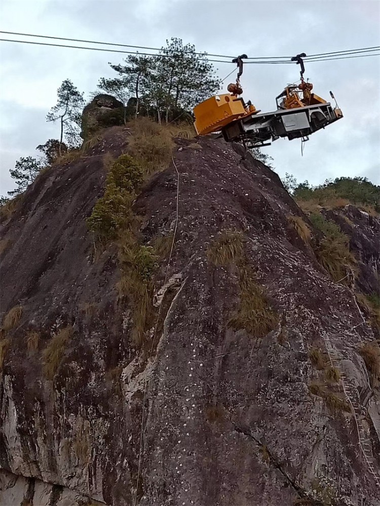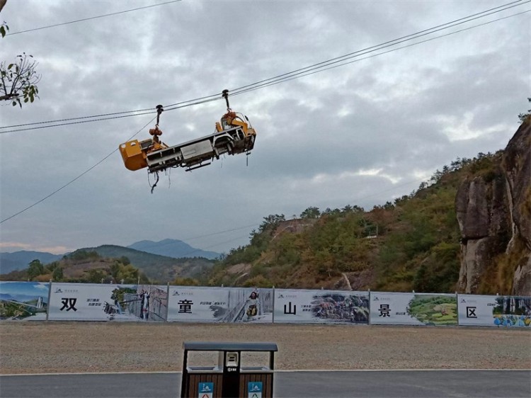 貨運(yùn)索道是指用于運(yùn)輸貨物的“索道”。多用于工礦企業(yè)和山區(qū)。主要形式有單線循環(huán)式索道和雙線循環(huán)式索道兩種。前者在循環(huán)運(yùn)轉(zhuǎn)并形成閉合環(huán)的鋼絲繩兩側(cè),等間距各掛若干個(gè)貨廂,一側(cè)貨廂載貨,另一側(cè)貨廂空載,鋼絲繩既承載又牽引。[1]