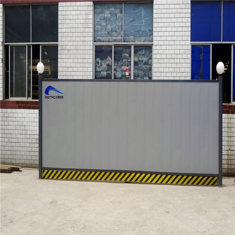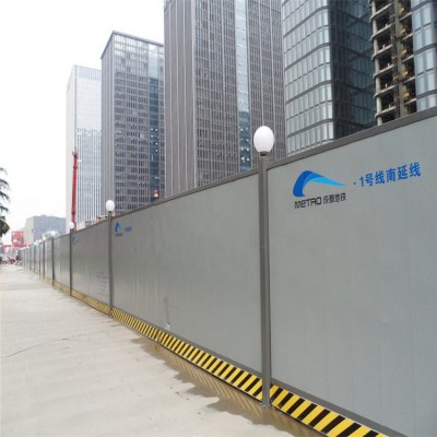 地鐵圍擋建設(shè)工程工地四周應(yīng)按規(guī)定設(shè)置連續(xù)、密閉的圍欄;建造多層、高層建筑的還應(yīng)設(shè)置安全防護設(shè)施。在市區(qū)主要路段和市容景觀道路及機場、碼頭、車站廣場設(shè)置的圍欄其高度不得低于2.5m,在其他路段設(shè)置的圍欄,其高度不得低于1.8m。