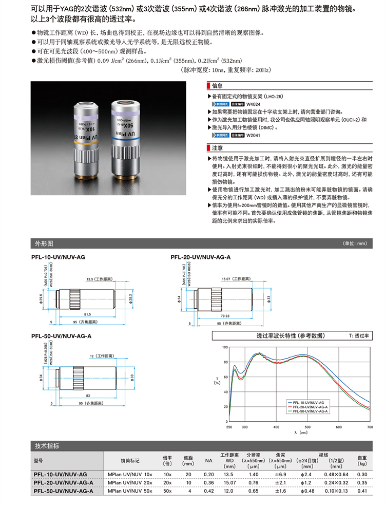 3波長(zhǎng)用物鏡 明視場(chǎng)觀察和激光加工 波長(zhǎng)光電平場(chǎng)消色差
