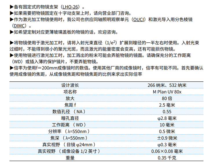 » 紫外用物鏡 紫外可見光近紅外 半導體質(zhì)量檢測微生物觀察