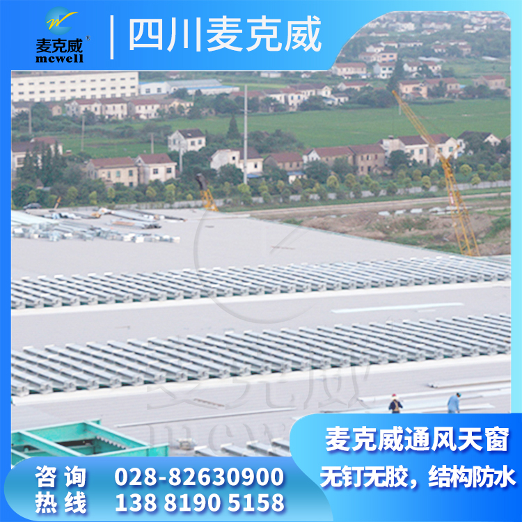通風(fēng)天窗為TC9型薄型通風(fēng)天窗,可以在建筑屋面采用屋脊縱向布置和順坡縱向布置。產(chǎn)品配置的啟閉閥板可以手動(dòng)、電動(dòng)及消防聯(lián)動(dòng)控制。