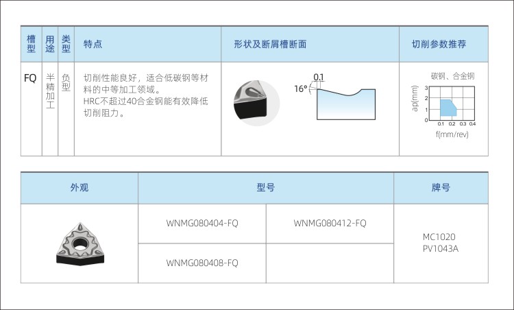 型號(hào) WNMG080404-FQ 類型 負(fù)角型