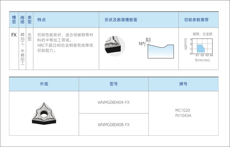 斷屑槽 FX 材料 金屬陶瓷
