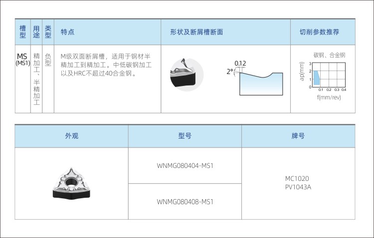 型號(hào) WNMG080404-MS1 類(lèi)型 負(fù)角型